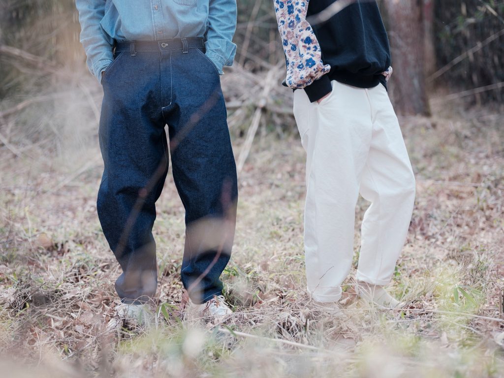 新作、岡山デニム使用のバレルシルエットのパンツ