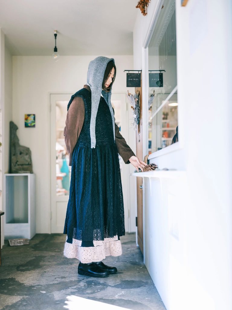 作品の詳細に関してはインスタグラムを見ていただきたいですが、古着リメイクなどの1点ものは、今の所店頭でのみご覧になれます。